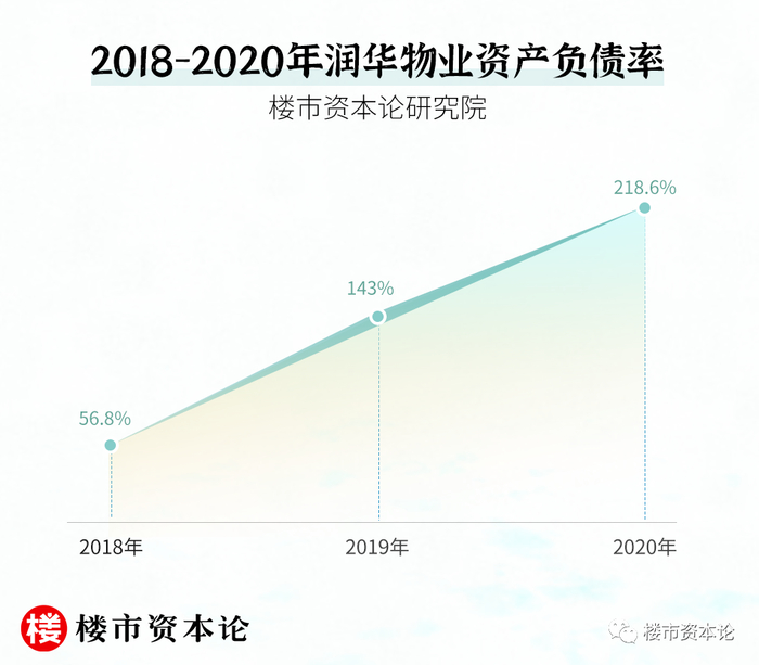 这也使得润华物业资产负债率持续上升,从从2018年的56.8%,上升至2020年的218.6%。