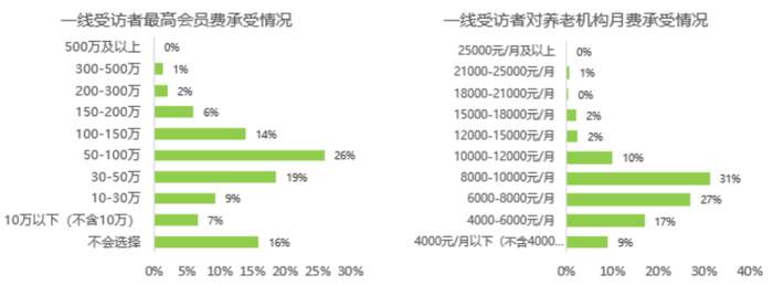 图:一线城市中高档老年客户养老消费能力调查数据