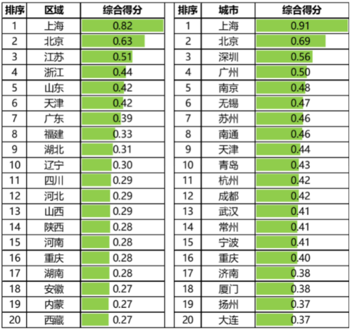 表:中国TOP20养老潜力区域和城市名单