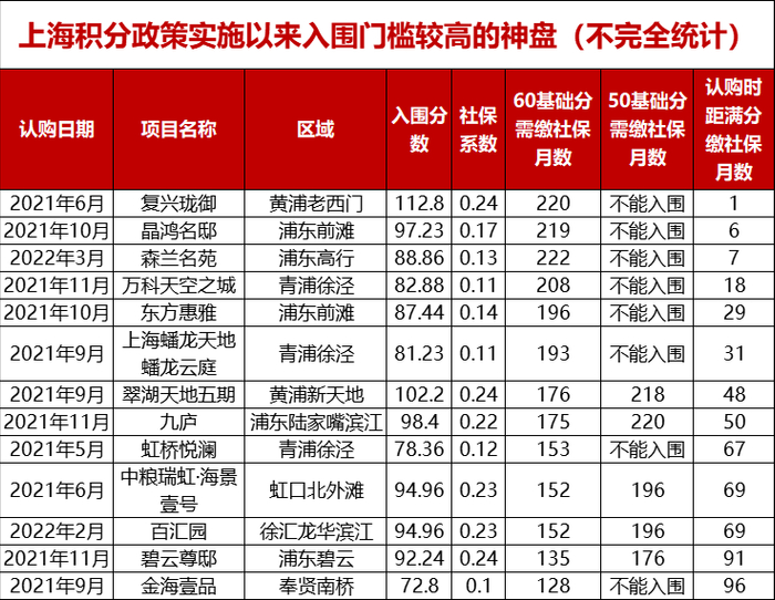 这也是2022年以来上海楼市入围难度最大的盘,如果单看社保月数,实则已经刷新了目前的新高了。