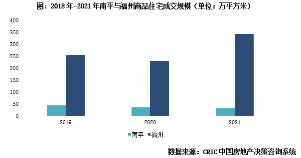 由于南平市场规模较低、民富基础较差、人口较少,新房市场无论是内生还是外溢购房需求均极为有限,楼市相对独立。2019年至2021年福州新房市场几经涨跌波动,但南平商品住宅成交面积仍维持原有规模。