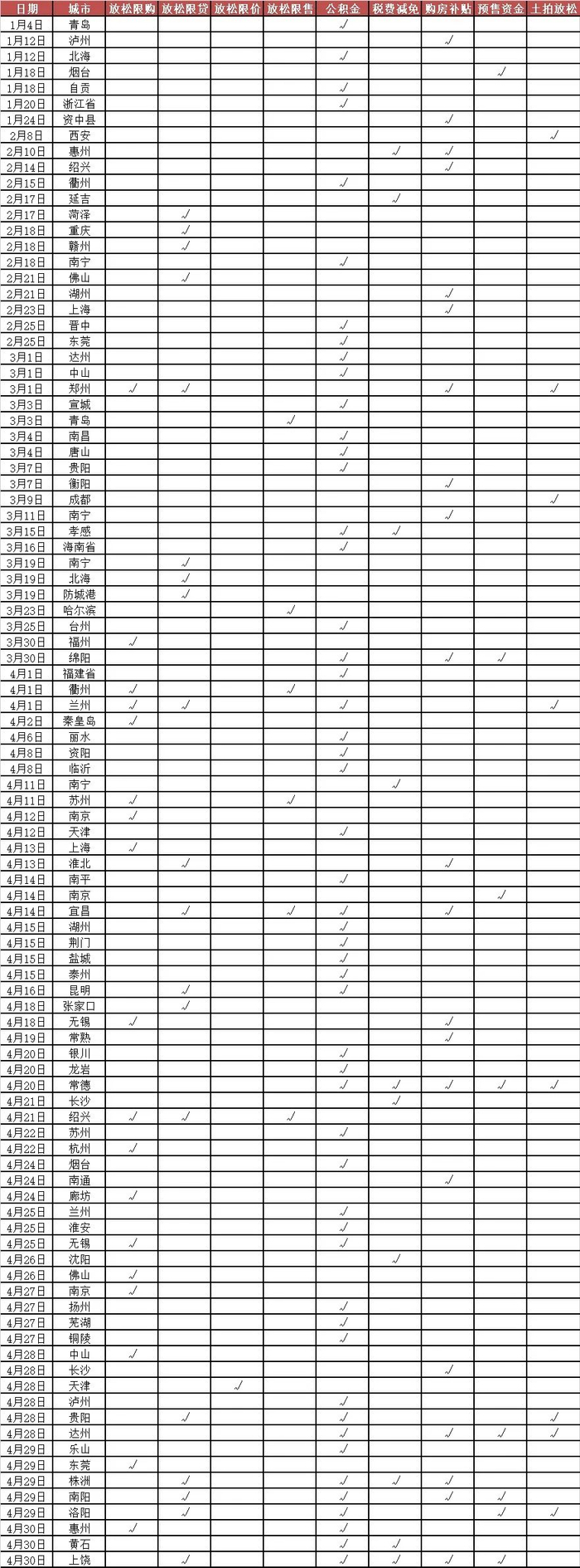 奥密克戎疫情突袭叠加楼市低迷大背景,前4月,83省市出台115次放松政策,南京、苏州等强二线城市跟进放松限购,南宁、沈阳等弱二三线城市财税刺激托市。