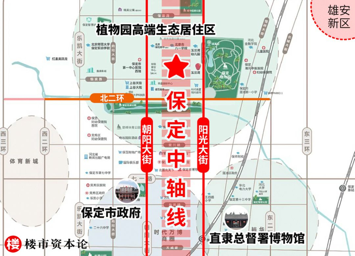 楼市资本论发现,有着与北京同样悠久历史,且一直同频共振发展的京畿重地保定,也有这样一条“中轴线”。