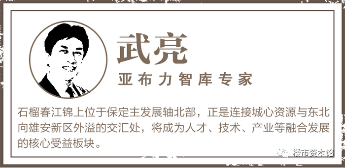 城市墅区东北向的雄安新区,作为第三层的外围联动,和保定一起正朝着新兴城市群融合发展,二者已从隶属关系演变成共生角色。雄安将承接北京非首都功能、高等教育,发展高端科研产业等。保定则作为老牌核心城市,以更广阔的人力与土地,构建与雄安相配套服务产业。