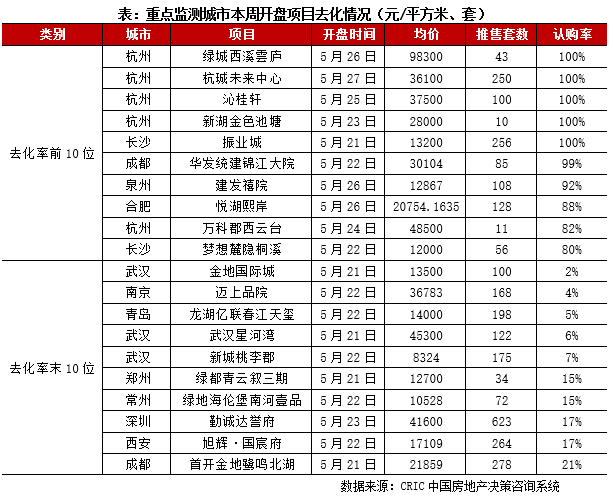 一线企稳二三线回升平均开盘去化率42%环比持平