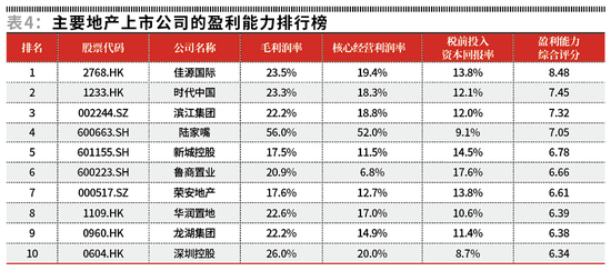 结果,佳源国际、时代中国、滨江集团、陆家嘴、新城控股、鲁商置业、荣安地产、华润置地、龙湖集团、深圳控股进入了盈利能力排行榜的TOP 10。