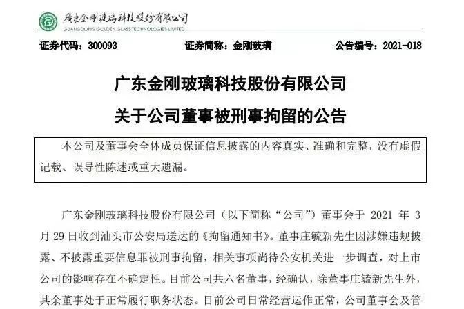 越是急功近利,越是欲速不达。因为收购计划最终未获审批,加上管理层无心经营,如意算盘落空的金刚玻璃持续高开低走,不仅股价跌破发行价,业绩更是连年亏损,多名董事因信披违规被刑拘调查。