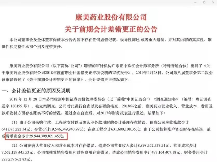 乱了阵脚的康美药业只得披露公告,称公司账实不符,各项差错金额合计903.01亿元,货币资金凭空蒸发近300亿元。