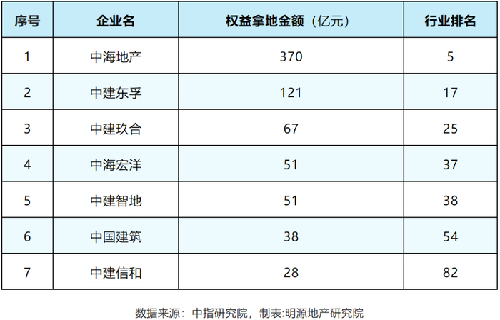 在今年1-7月TOP100房地产拿地排行榜上,就有7家中建系公司上榜,其中5个工程局的地产子公司上榜。(数据来源:明源地产研究院)
