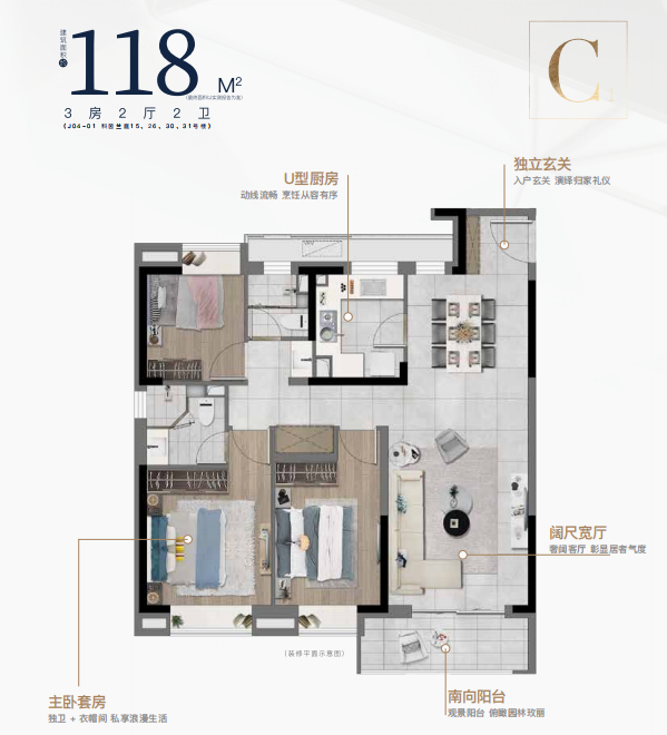 图片为功能展示,仅供参考,各户型户内风口定位具体以实际交付为准