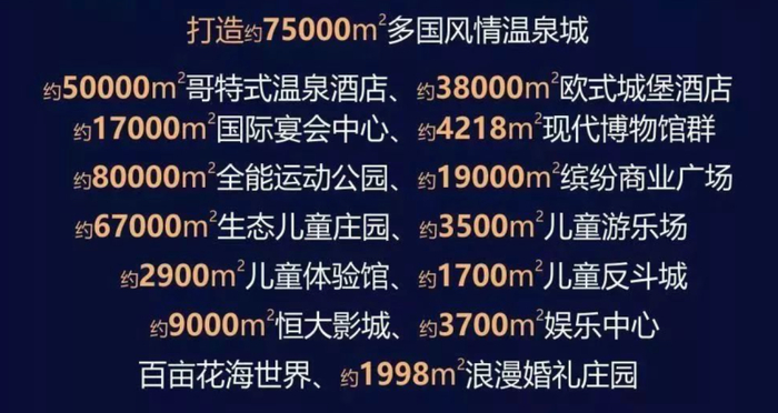 公开资料显示,恒大拟投资500亿元建设武汉恒大科技旅游城项目,计划打造温泉小镇、科技小镇、运动公园和儿童公园等文化旅游业态。
