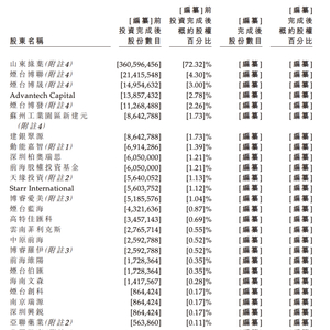 同时,AdvantechCapital持股2.78%,苏州工业园区新建元持股1.73%,建银国际通过建银聚源持股1.73%,动能嘉智持股1.39%,烟台蓝海持股0.87%,烟台伯汇持股0.35%,深圳柏奥瑞思、前海股权投资基金、天缘投资分别持股1.21%、1.21%和1.13%。