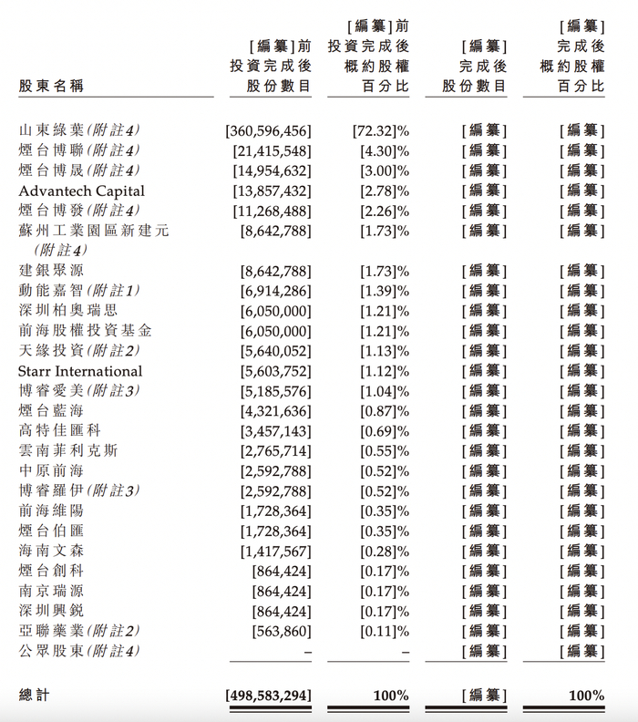 本次上市前,博安生物的控股股东为绿叶制药、亚洲药业、LuyeHK、烟台绿叶及山东绿叶。其中,绿叶制药间接拥有博安生物72.32%的权益。分拆完成后,博安生物仍然是该公司的附属公司。