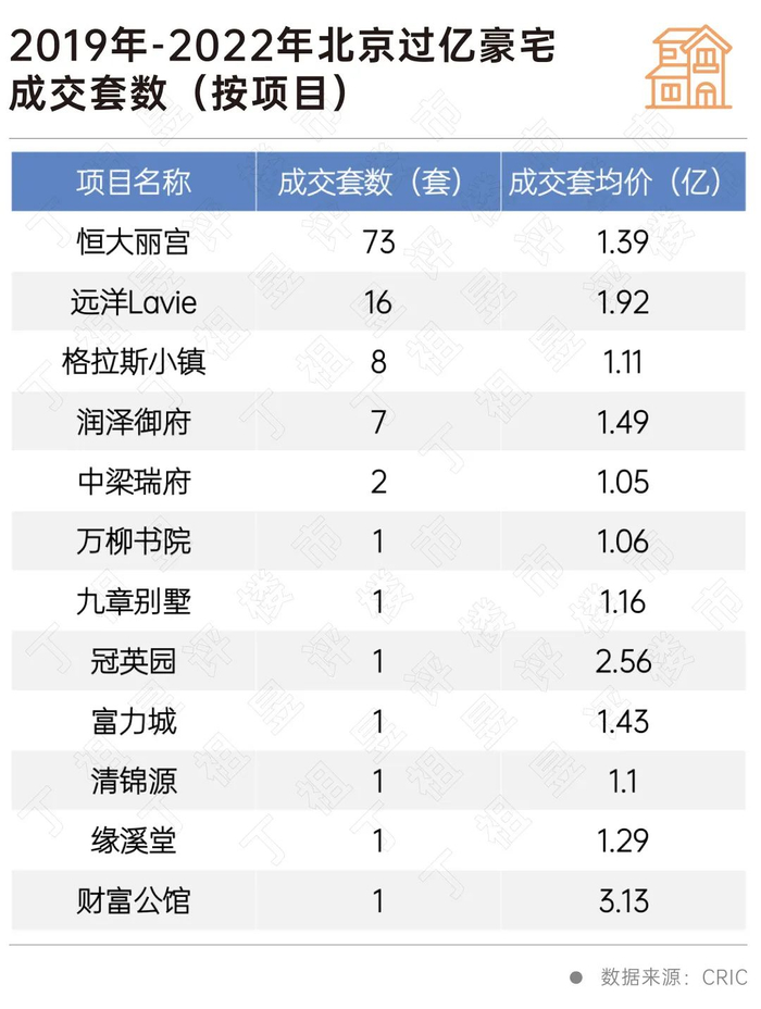我们先看2022年,总价过亿的一手豪宅中,恒大丽宫贡献了6套,远洋Lavie和润泽御府分别成交了2套,此外,冠英园、清锦源和格拉斯小镇各贡献1套。