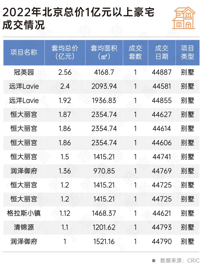 我们先试试回答一下,2022年,光是北京,这一年新房成交了13套总价过亿豪宅,最贵的一套总价2.56亿元。