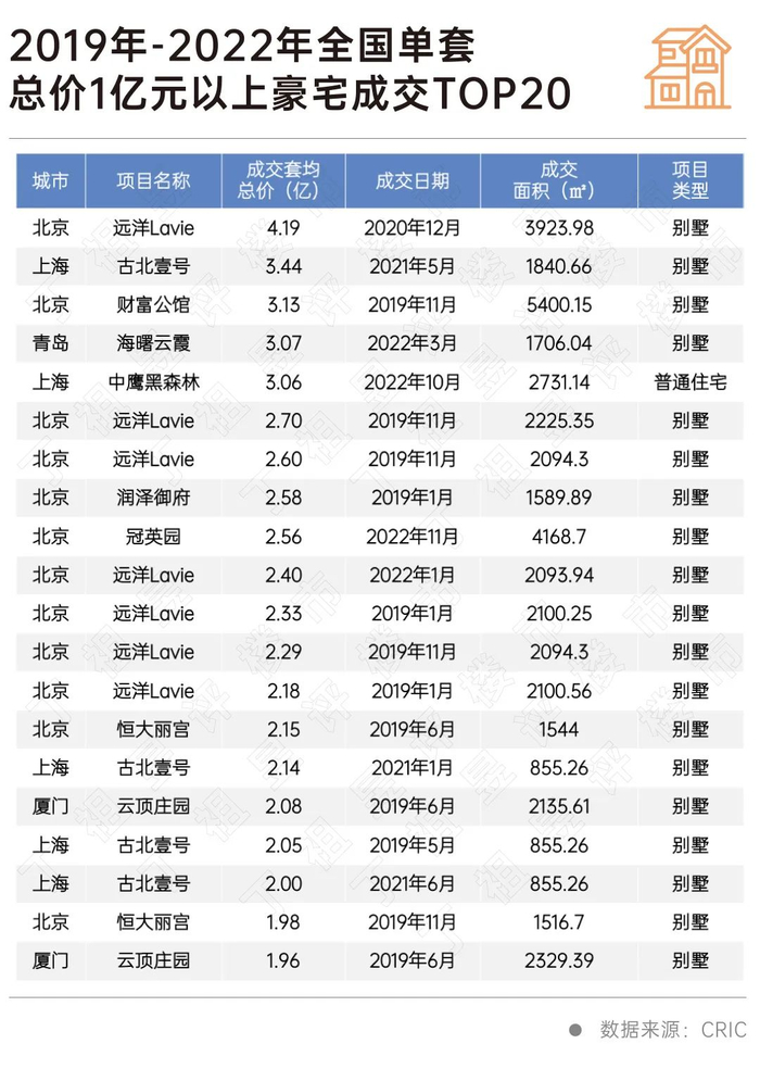 要知道,单套总价超过3亿元的房子并不多,在过去4年里,全国只成交了5套,可以说绝无仅有,而这五套豪宅的坐标,分别在北京、上海和青岛。