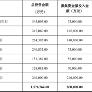 其中,温州新城瓯江湾项目投资总额约为34.5亿元,计划使用募集资金7.5亿元;东营项目投资总额约为24.71亿元,计划使用募集资金14.5亿元;重庆大足项目投资总额约22.44亿元,计划使用募集资金14亿元;泰安新泰项目投资总额约为24.08亿元,计划使用募集资金7.5亿元;宿迁泗洪项目投资总额约15.14亿元,计划使用募集资金5.5亿元;大同云冈项目投资总额约为12.81亿元,计划使用募集资金7亿元,另有24亿元将用于补充流动资金。