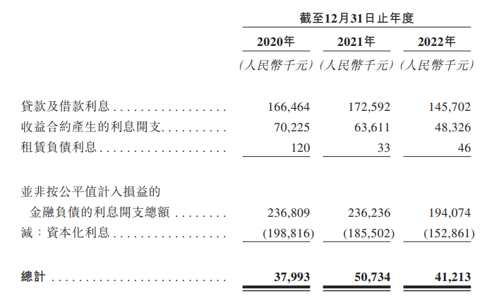 值得注意的是,在2020年和2021年,中亿基业的利息开支总额分别为2.37亿元和2.36亿元,资本化利息的占比分别高达83.9%和78.5%。在2022年,资本化利息占利息开支总额的占比也高达78.8%。