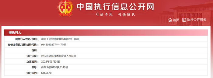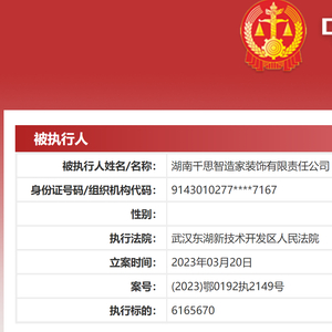 千思装饰被武汉东湖新技术开发区人民法院列为被执行人