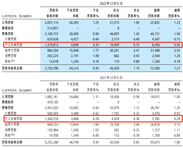 按产品分类看,截至去年底,招商银行涉及个人住房贷款和垫款余额约1.38万亿元,其中不良贷款近49亿元,同比增加11亿元,关注类贷款余额104.9亿元,同比增加54.81亿元,逾期贷款近70亿元,同比增加32亿元,逾期率0.5%。