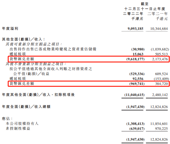 若考虑到其他收入损益,去年合生创展其他全面总损失110.4亿港元,较2021年获利24.8亿港元,损失即为惨重,致使其去年全面净利亏损约19.5亿港元,较2021年全面净利128.2亿港元,盈利无疑被暴击了