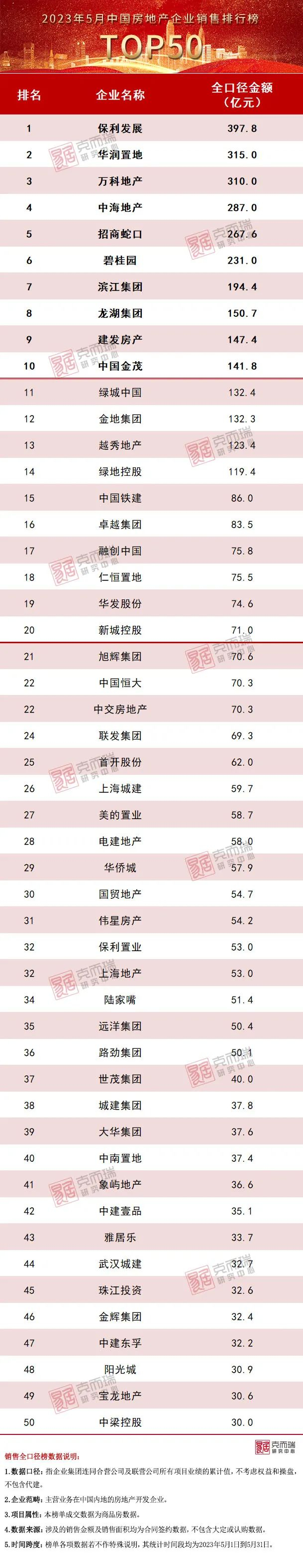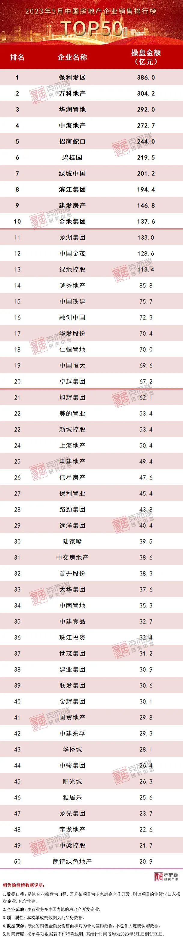 附:2023年5月中国房地产企业销售排行榜