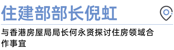 日前,住房和城乡建设部部长倪虹会见了香港特别行政区政府房屋局局长何永贤一行,就加强内地与香港在住房及相关领域交流合作、共同提升人民群众的居住水平进行深入探讨。