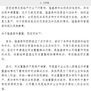 如今,隆基泰和一封《公开信》,道出了即将”破产重整“的惨淡现实。外界疑惑的是,这家房企到底欠了多少债?