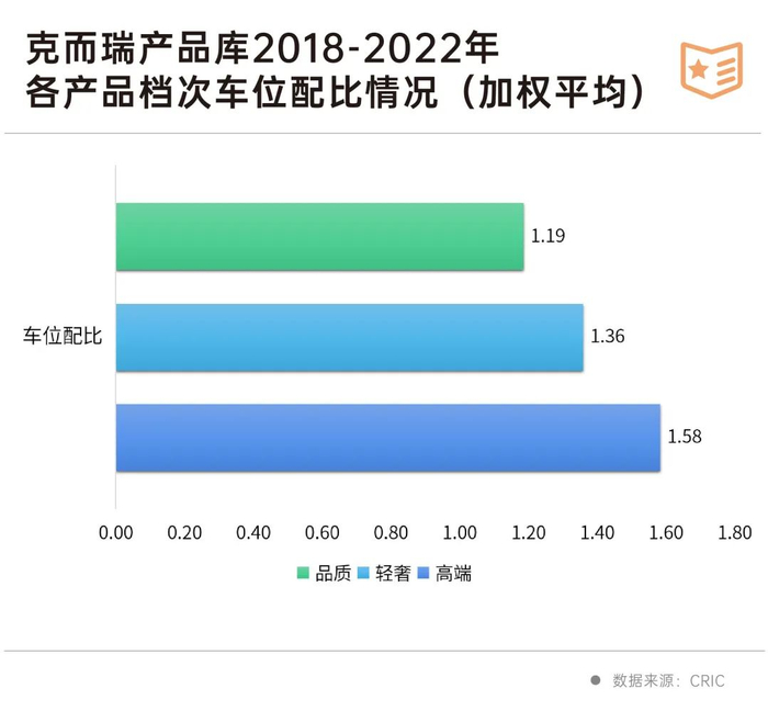 首先是车位的配比。合理的车位配比已成为购房者考量项目的重要因素之一。从克而瑞产品库数据来看,产品档次越高,其车位配比也相对充裕,高端产品的平均车位配比达到1.6左右。