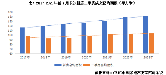 三是新房产品“越做越大”,二手房总价更友好,倒逼刚需买二手房。例如长沙,2017年-2023前7月,入市新房套均面积已经从117平方米升至142平方米,即便不考虑单价涨幅,套均总价也明显增加,而二手房110平左右的三房房源数量更多,足以满足刚需对总价和面积的双重要求。又比如郑州,123万就能上车一套二手房,而新房平均则需要161万以上,天津新房、二手房的套均价更是相差近1倍,对于购买力有限的自住刚需而言买新房支付压力较大,故而转投二手。