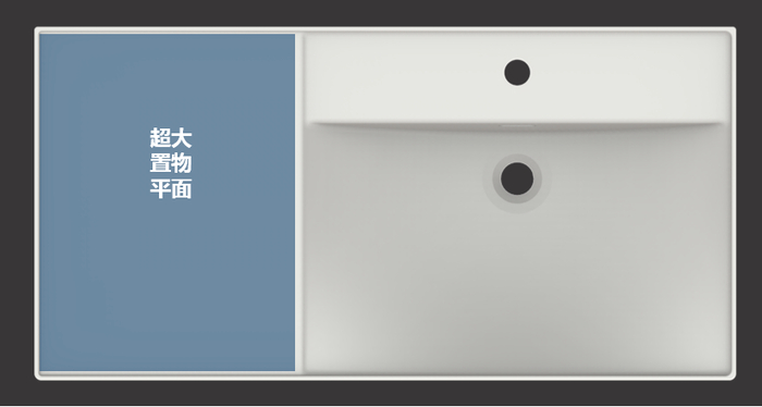 此外,超大尺寸的置物平面设计,更可保障洗漱时常用的物品可摆放在平面上,同时四边具备挡超薄挡水沿,减少水流溢出。
