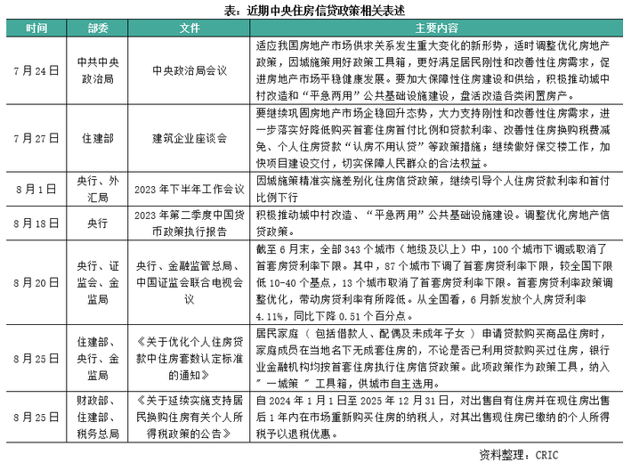 实际上,近期中央已就住房政策多次表态,对于“认房不认贷”也有过明确预告。7月24日政治局会议提出要适时调整优化房地产政策,27日住建部部长在建筑企业座谈会上,指明政策三大优化方向——降首付、降利率、落地“认房不用认贷”。8月20日央行、证监会、金监局召开联合电话会议,指出要调整优化房地产信贷政策。