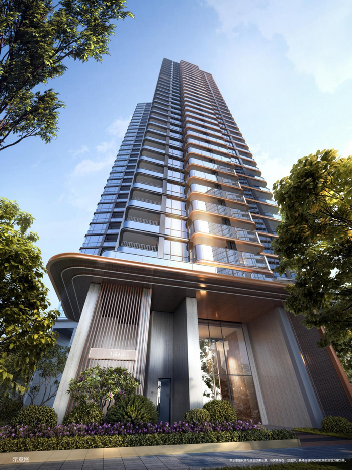 最能体现「金地峰境誉府」高品质的是建筑外立面,以玻璃幕墙+铝板为主,部分使用仿石涂料,同时采用前卫的“横向线条+弧形元素”设计,简洁精致、尊贵典雅。