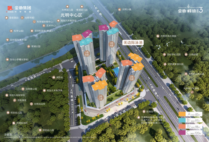 「金地峰境誉府」就位于光明中心区,且是位于光明中心区未来核心居住区、核心商务区、核心生态区的交汇处,这里既是光明中心区未来的价值最高地,也是整个光明未来的价值最高地。