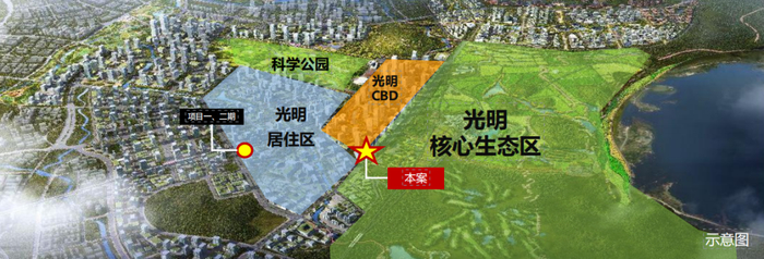项目位于光明中心区,占据光明科学公园头排位置,是满京华狮山旧改首期产品。