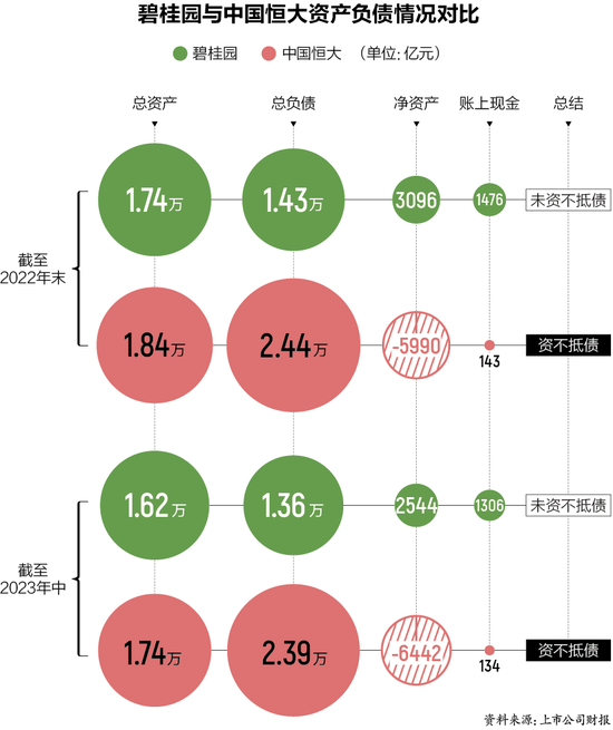 “碧桂园会成为下一个恒大吗?”过去两个月,诸如此类质疑在坊间流传,不断拷问着碧桂园和利益相关者。从财务层面来看,2022年财报显示,剔除合同负债后碧桂园负债为7667.32亿元。而同期剔除合同负债后,恒大负债为1.72万亿元,早已资不抵债。