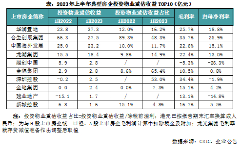 投资物业重估损益,是企业所持有的商业、酒店、办公等投资物业,在报告期内按照公允市值波动进行重新估值后发生的净值差额,计入当期损益。2023年上半年,市场出现短暂回暖迹象,但整体仍维持低温态势,同时行业流动性呈现弱修复,由于预期支撑不足,投资物业重估收益减少和亏损依旧是主旋律。
