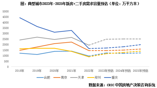 目前来看,二手房韧性显著好于新房,为了更为聚焦的分析一二手房成交相关性,购房群体的差异化特征,我们选择了合肥、南京、天津、郑州、重庆等5个典型城市,在解析各城市成交结构、客群特征的同时结合其需求总量、购买力情况,对其新房、二手房后期走势进行预判。