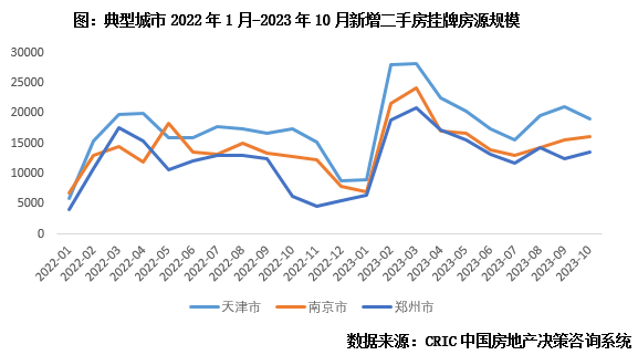 之所以二手房更能有效导入刚需,成交表现能优于新房,我们认为主要有以下三方面原因:一是供应显著放量,二手房挂牌量稳中有增。就比如郑州,2-10月月均新增挂牌1.5万套,较去年下半年的月均新增挂牌量翻倍,3月单月更是接近3万套,创2022年以来新高。