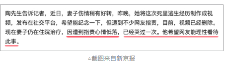 妻子还在住院治疗中,因遭到网友们的指责,感到情绪很低落,甚至都哭过一次了,所以呼吁广大网友要理性冷静客观地看待这事。