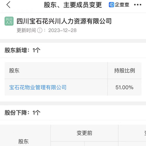 股权变更前,宝石花兴川人力资源由昆仑兴川实业100%持股。股权变更后,其大股东为宝石花物业,持股51%;昆仑兴川实业持股49%。