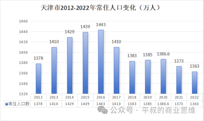 2022年底,天津的常驻人口是1363万。1363万,妥妥的千万人口大城市,不过虽然看着很多,但如果把天津历年人口拉出来做个图,一比较你就会发现,天津的人口,原来从2017年开始,就一路下跌减少了。