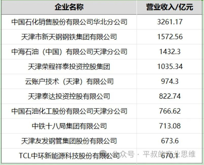 你看,这是有人统计的天津前十的头部企业,发现什么问题没有?