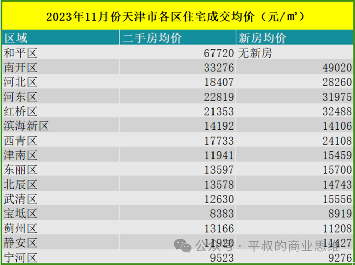 而且,你关心的天津的房价,也很有意思。目前天津二手房最贵的区是和平区,单价6.7万每平米左右。第二名是南开区,单价3.3万每平米左右。第一名是第二名的两倍多,这是在全国其他任何一个一二线城市,都没有的现象。