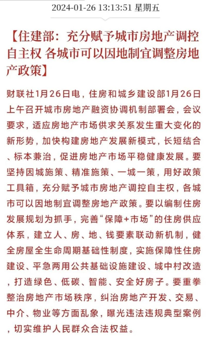 各地要抓紧研究提出可以给予融资支持的房地产项目名单,精准有效支持合理融资需求,且充分给予城市房地产调控的自主权,各城市可以因地制宜调整房地产政策。