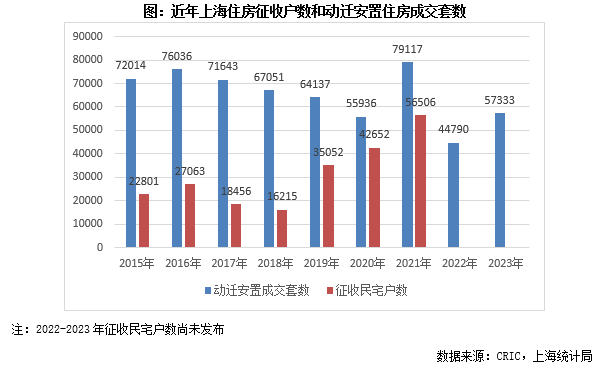 动迁安置房方面,近年上海交付规模低于预期。2019年以来,上海市政府进一步加强了住房征收力度,2021年征收民宅户数达5.6万户,为2010年以来新高,但是动迁安置房的交付规模并没有随之持续上升,仅在2021年短期触顶至7.9万套,2022-2023年的交易规模均不足6万套。按照上海以往2.5倍左右的征收还建比估算,在2019-2021年间征收的民宅或仍有半数尚未交付相应的安置房,受此影响,预计短期内上海民宅征收速度或有所放缓,动迁安置房对于新房交易规模的“托底”作用也会有所减弱。