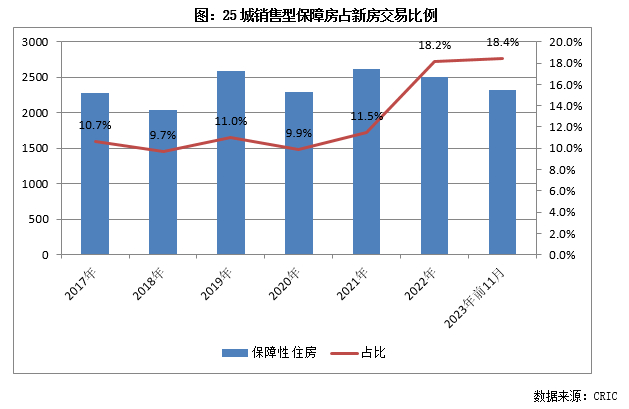 3、保障房供求规模抗周期更强,典型城市新房交易中占比已接近二成