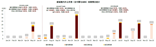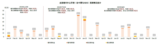 注:1)美元兑人民币汇率选取7.2:1;2)境内债若有回售条款且在观察期内行权,我们保守认为投资人全部行权,即回售作到期处理;3)数据时间截至2024年1月28日,不包含此前已偿付债务。