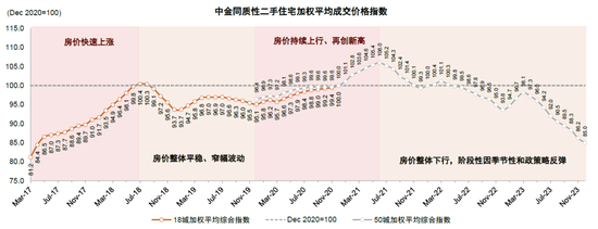图表6:2023年中金同质性二手住宅成交价格指数累计下跌9.3%
