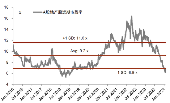 图表9:A股地产公司历史NAV折让水平和动态市盈率